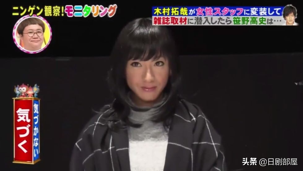 在一期整人综艺中,木村拓哉特意进行了女性化的化妆,变成“木村拓子”闪亮登场。