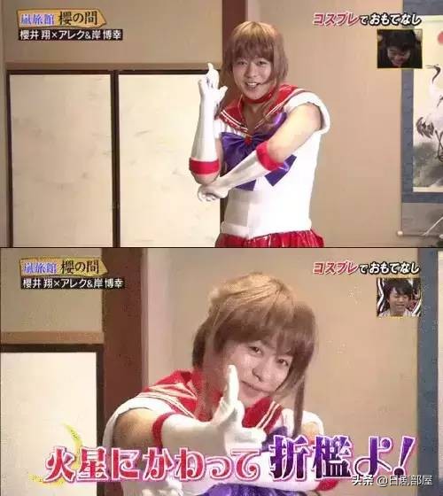对于arashi粉丝来说,樱井翔的女装也是一道靓丽都风景线,之前「嵐にしやがれ」里这美少女战士的cosplay似乎让不少男性观众觉得可爱。