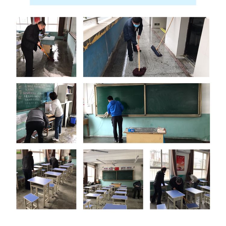 老师们对教室、走廊、厕所、绿化带等场所进行清扫、消毒。大家干劲十足,热火朝天,做到不留死角,不留盲区。学校到处涌动着忙碌的身影!