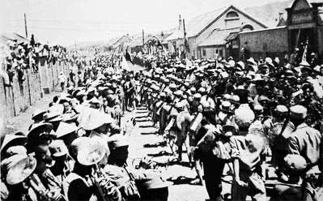 日本宣布无条件投降后,无论是东江纵队的全体官兵,还是当地的老百姓,都欣喜若狂,他们高唱着军歌,载歌载舞,尽情的庆祝着抗战的胜利。