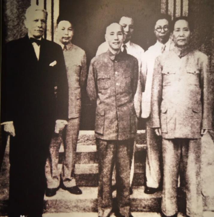1945年,抗日战争取得胜利,毛主席为求和平亲赴重庆,与蒋介石国民党谈判战后问题。