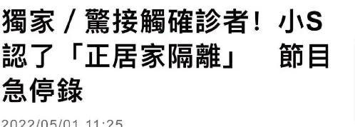 根据台媒爆料,小s正在录制的新节目《小姐不熙娣》因工作人员确诊新冠而喊停,周六,原本小小s要录制节目,结果,因节目组工作人员确诊而紧急取消,小s因与工作人员有接触而被居家隔离。对此,今天,《三立新文网》记者向小s求证身体情况,小s回应记者说:“每天都快篩,目前阴性。但因為接触过确诊者,因此,她目前正在「3+4」居家隔離,等隔离结束後就會正常复工。被问及心情时,小s透露:「沒事,就照录,平常心看待。