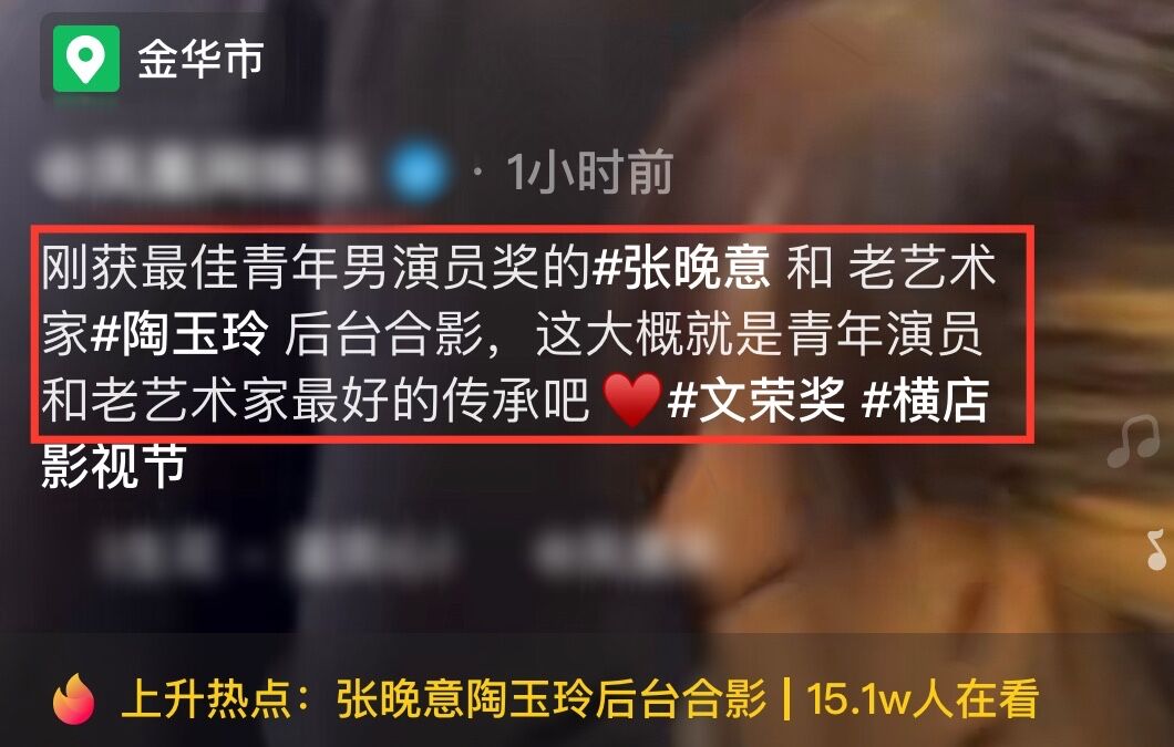 10月23日,某媒体在社交平台上更新一则视频,曝光男星张晚意与戏骨陶玉玲在颁奖典礼后台的暖心一幕,引起网友关注。