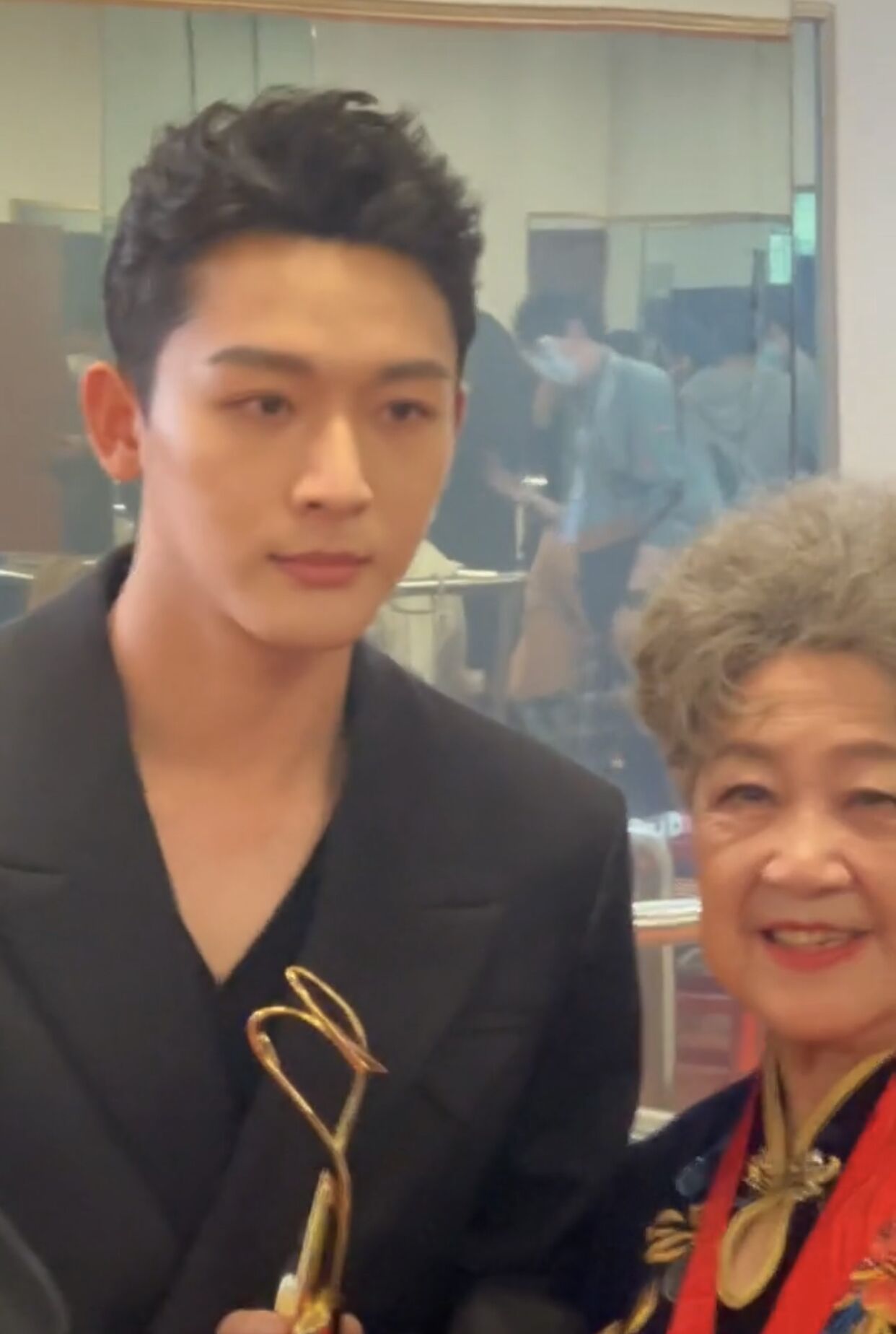 媒体为两人拍照纪念时,张晚意手捧奖杯,他并没有因获奖而喜形于色,而是保持着沉稳与内敛,看起来十分谦逊。陶玉玲则是笑得很灿烂,似乎在为身边优秀的后辈感到高兴。