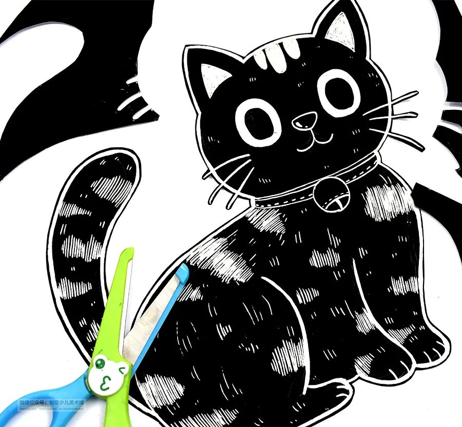 小朋友?你喜不喜欢小猫咪呢?猫咪是非常常见的一种动物,猫分为家猫和野猫,野猫一般生活在树林或者城郊地带,现在城市中也有着大量的流浪猫,它们以厨余垃圾或者老鼠、小鱼为食,平均寿命在两年左右。而家猫的祖先据推测是古埃及的沙漠猫,以波斯猫为代表,它们在几千年前就被人类驯化,现在家猫已经是一种常见的家庭宠物了。猫咪性格一般比较温顺,时而高冷,时而粘人,它们有着猫科动物特有的敏捷和好奇,与人类相处得非常好。我们常见的宠物猫有英国短毛猫、橘猫和加菲猫等等,不同品种的猫咪有不同的性格,我国本土的狸花猫就非常调皮,它们性格活泼好动,身上有着好看的花纹,非常受人喜爱。小朋友,你家有养一只小猫咪吗?它是什么颜色的呢?在今天的课程中,就让我们来绘制一只可爱的小猫咪,我们将使用刮画的方式巧妙地勾勒出猫咪的花纹和造型,结合有趣的背景描绘,锻炼小朋友们的造型能力和装饰画面的能力,培养小朋友们 从生活中发现创作素材的能力,我们一起来看看参考教程吧!