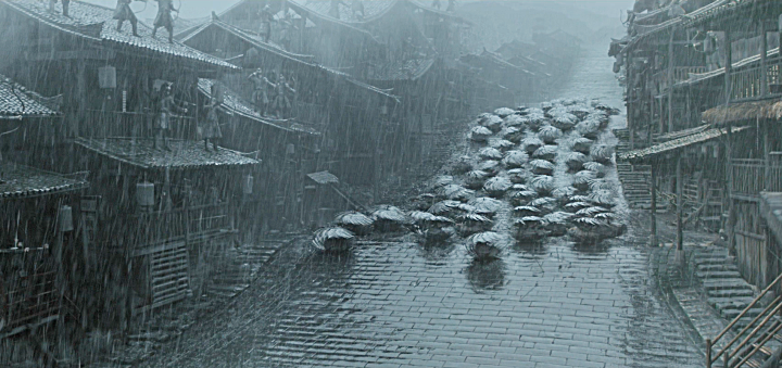 田战带着队伍跟杨平的士兵厮杀,充分利用了大雨结合沛伞的优势,杀死多名炎国守军。影子与杨苍在船上决斗,为田战破境州争取时间。另一边,死士与敌军的厮杀让鲜血流淌在雨水里,公主青萍和杨苍儿子杨平也互杀死于大雨中,田战大喊“境州破”,砍下炎国大旗。