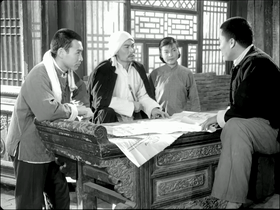 李三义:我记得片子拍了半年多,1965年“五一”节开始拍的,出了两次外景。第一次七、八月份热天回来,在顺义县焦庄户拍了一些外景,在德胜门外清真寺拍摄的村公所。更多的是在厂内搭景拍摄地道内、房舍内外、日军炮楼内等戏。第二次外景主要拍冬天的戏,比如民兵从红薯地跃出,冲锋!千千万万抗日民众挥舞着刀枪,从四面八方呐喊冲来,活捉山田!街头大槐树下,敲锣打鼓欢庆胜利等等都是二次外景拍摄的,要的是秋末冬初景色。那时拍电影很讲究,在季节上不能马虎!