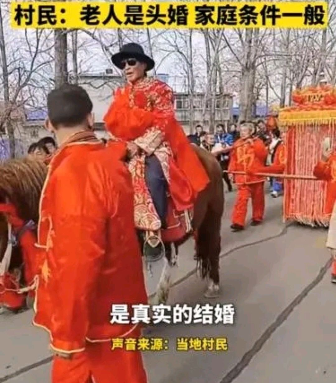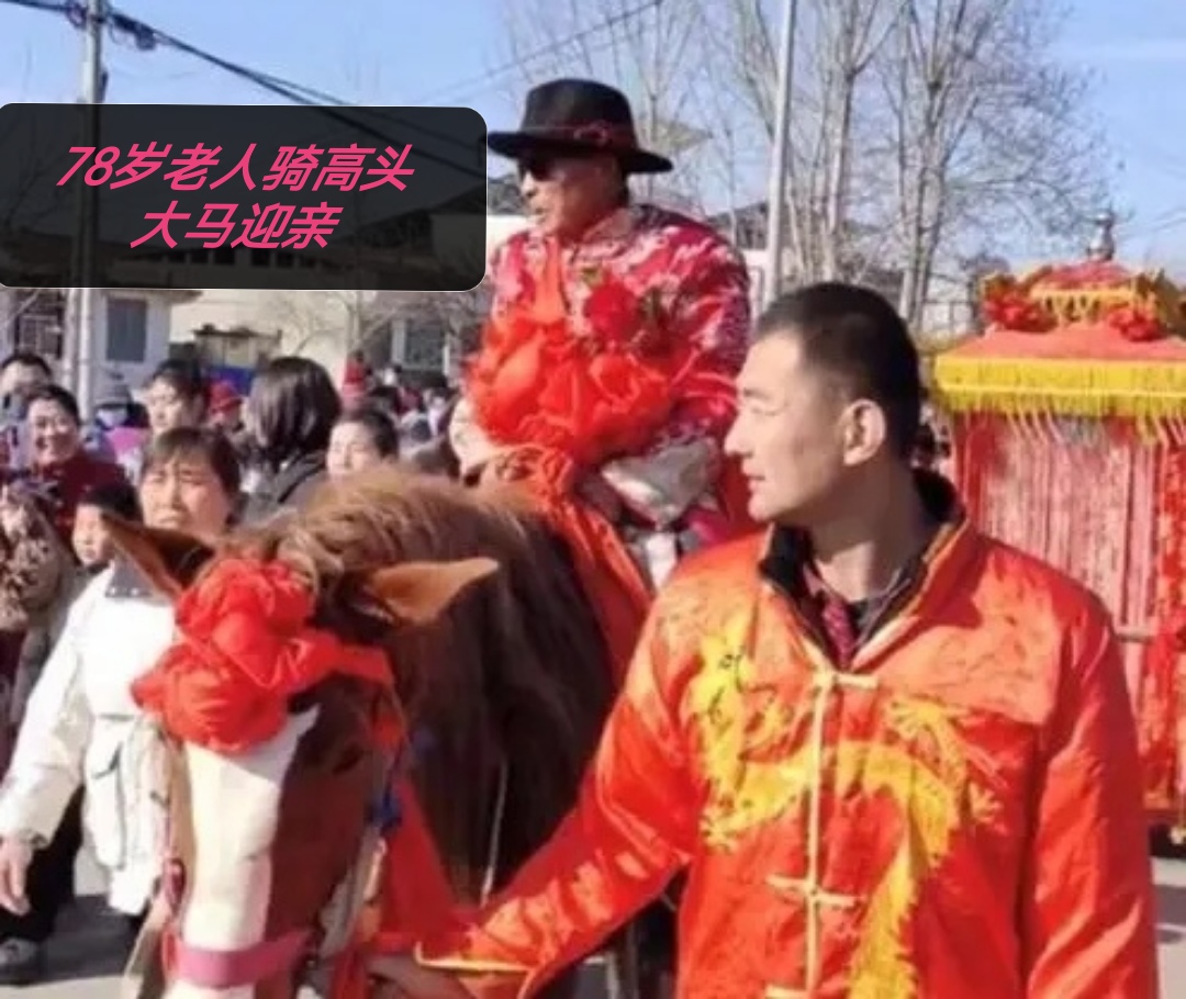 78岁老人骑高头大马迎娶小自己30岁的新娘,乡邻:他还是头婚