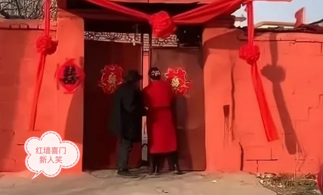 老人的乡邻给众人介绍着这对新人,说这老爷子这可是头婚,他和新娘的故事也算挺有意思。