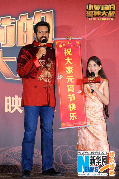 在元宵佳节即将到来之际,两位主创还与观众亲切互动,不仅现学中国话 “祝大家元宵节快乐”,还学写毛笔字“团”和“圆”,他们准确的发音和书法令观众掌声不断。而作为回报,他们也现场教观众说印度语。此外,两人还手举收到的中国结礼物向观众拜年。现场热闹非凡,气氛温馨又欢乐。