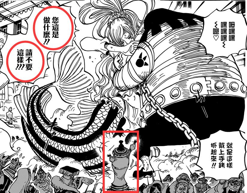 这里我们要注意看一下,由于白星公主的体型本身非常的庞大,所以贝派去的奴隶身体也很强大。上面方框中的人就是天龙人,而那个戴着手链的男子就是3号奴隶,这里白星公主受辱了。毕竟这个奴隶看起来比白星还要强大,如此庞大的身躯真是没有办法,而旁边的人不敢帮忙,毕竟天龙人被誉为“神”的种族!
