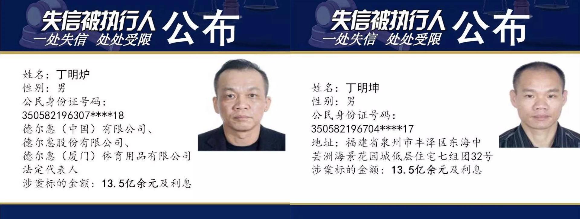 然而德尔惠最近一次上热搜,却是因为其法定代表人丁明炉及其胞弟丁明坤欠债13.5亿元(不包含利息),被泉州法院列为失信被执行人。