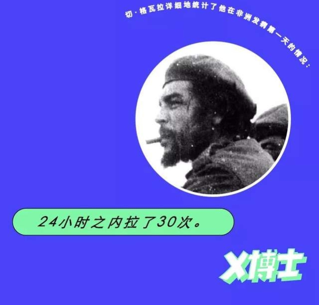 自打进了环境恶劣的丛林,本就患有哮喘的切·格瓦拉在各种热带病的折磨下身体也愈发吃不消了。其中一次痢疾引发的腹泻几乎让他拉得脱相。“医生”切·格瓦拉详细地统计了他发病第一天的情况:24小时之内拉了30次。