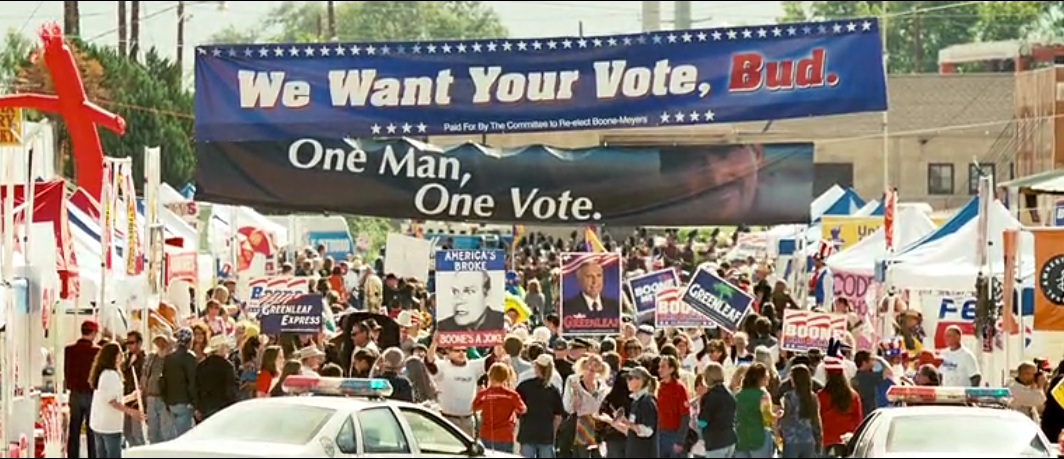 故事发生在新墨西哥州的一个小镇上,当时正处在美国大选的日子,各地选举活动在如火如荼的进行,这个小镇也不例外。
