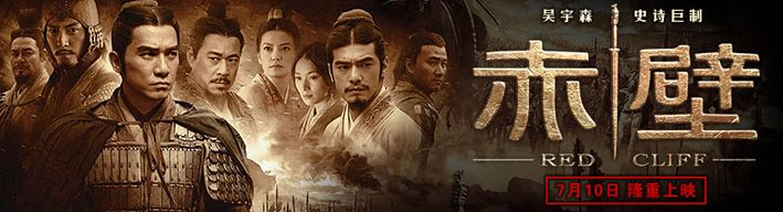 《赤壁》是分别发行于2008年、2009年,由吴宇森执导的系列电影,由金城武、梁朝伟、张震、林志玲、 张丰毅、赵薇、胡军、中村狮童主演。该片分为《赤壁(上)》和《赤壁(下)》上下两部,分别于2008年7月10日和2009年1月7日上映