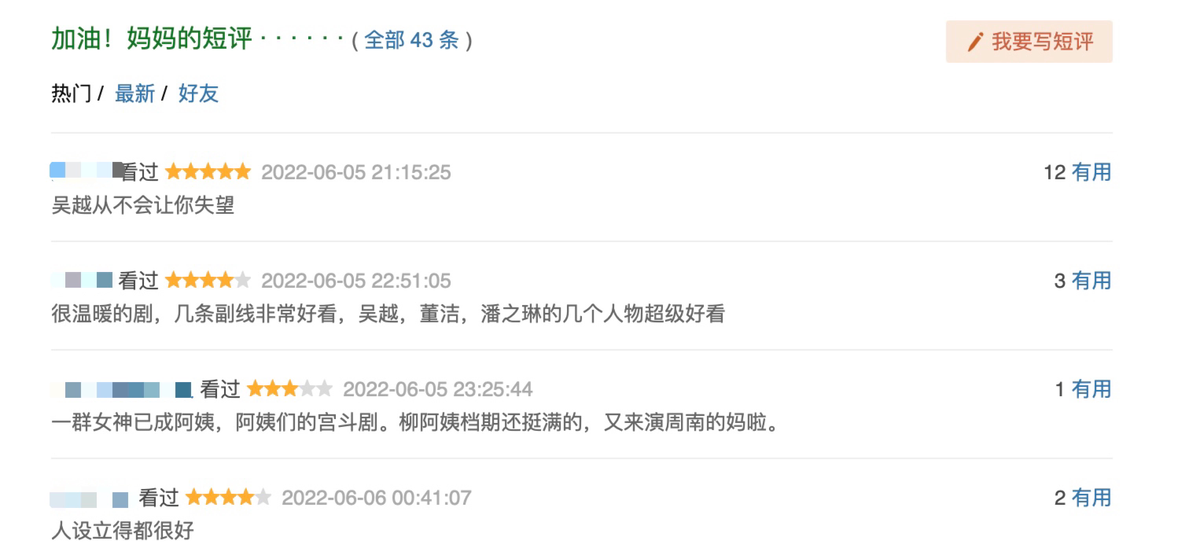 而更重要的是,作为才上线的新剧,《加油!妈妈》不仅在数据表现上非常亮眼,在口碑方面也颇有潜力。