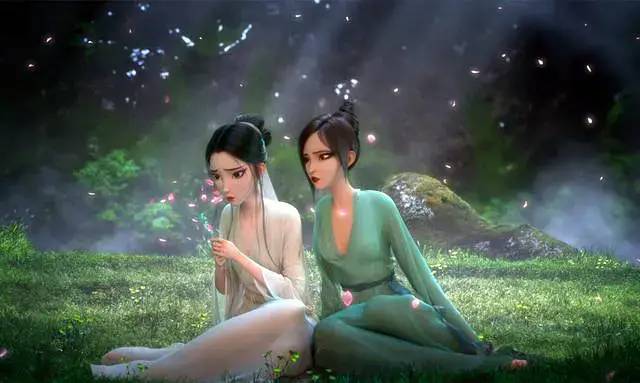 由于小白和小青都是蛇精修炼成人形,两妖精成人形前就终日如胶似漆般相互依偎缠绕,修成人形后自然也是形影不离,于是在徐克的《青蛇》中王祖贤和张曼玉饰演的青、白二蛇呈现出了百合情节也就显得合情合理。而《白蛇:缘起》也致敬了其中的经典桥段: