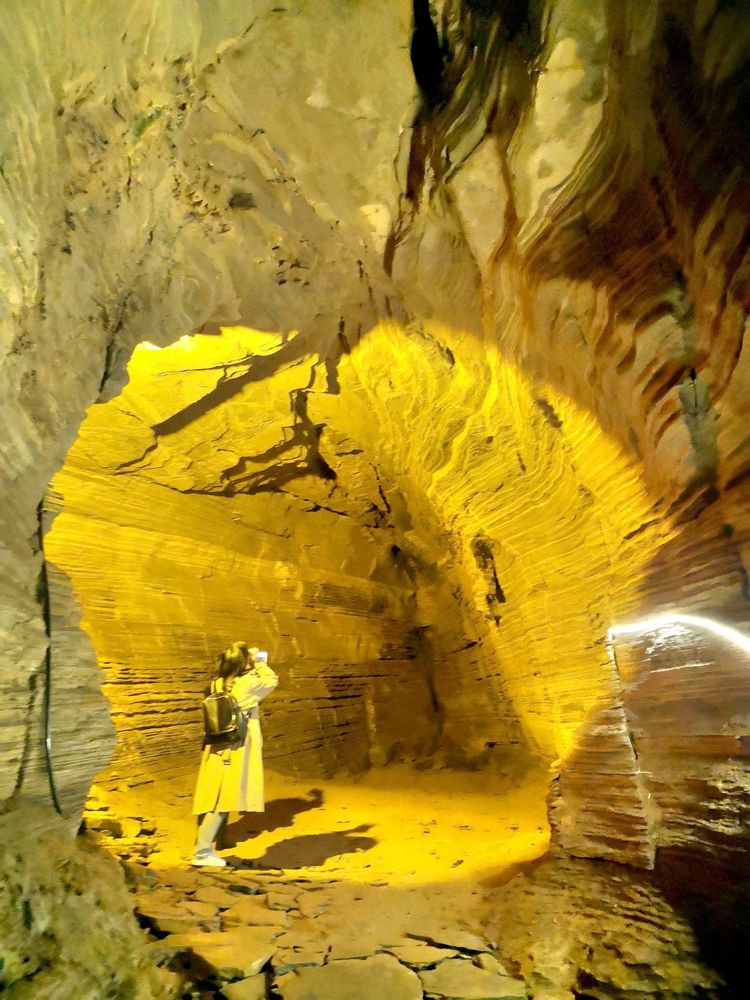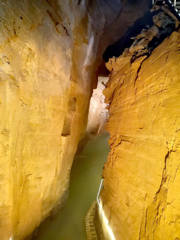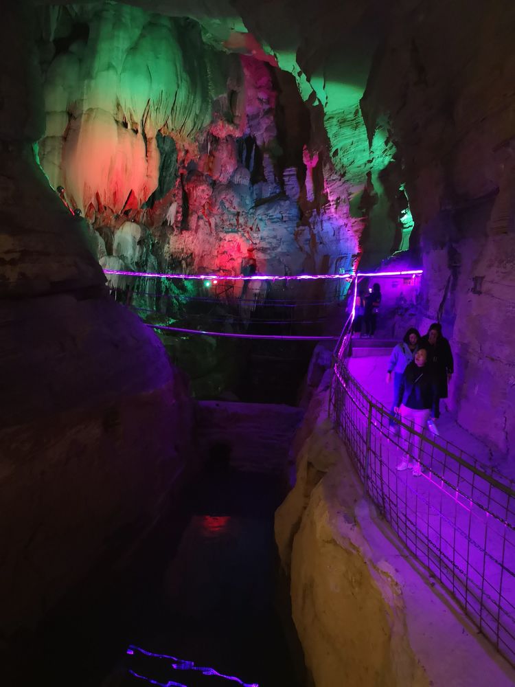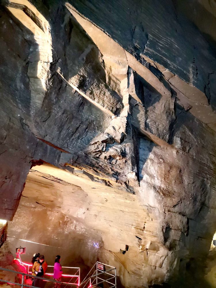来到小龙洞内,有巧夺天工的钟乳石:莲花池,龙须石等。但如果你想满眼都是奇形怪状、栩栩如生的石笋、石柱、石瀑……估计你会失望。洞里面更多的是如刀削斧劈的石壁,横亘在洞两侧、在距离你头顶高高的地方,有一种嶙峋的美,如一幅幅遒劲有力的画。