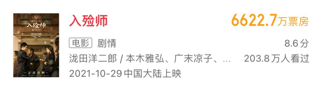 去年引进的同题材总统山之作《入殓师》,拿下了6700万的票房;