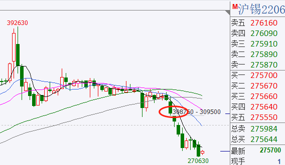 3、继续缺出现的次数比较少,它是价格在突破形态后留下的,它与突破缺口一样出现的次数比较少。如沪锡2206在2021年12月上涨过程中连续出现跳空。