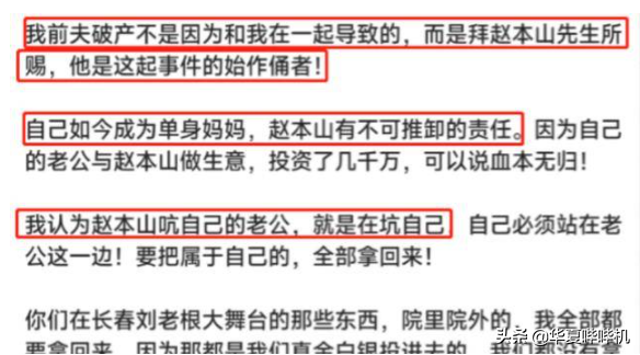 结果话音没落几年,老赵家也祸起萧墙了,并且还是被“孙子辈”的小妹儿怒撕了。传出来的核心关键词就是赵本山毁了女弟子的人生和婚姻,还坑了她“前夫哥”一大笔钱。