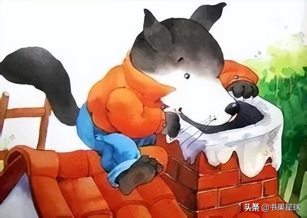 可是,砖房子坚固无比,任凭它又吹又撞,老三的房子都完好无损。这时,大灰狼发现房顶上有个烟囱,于是想从烟囱里钻进去。第三只小猪在烟囱底下架起锅,烧好水,大灰狼掉进了滚烫的热锅里……