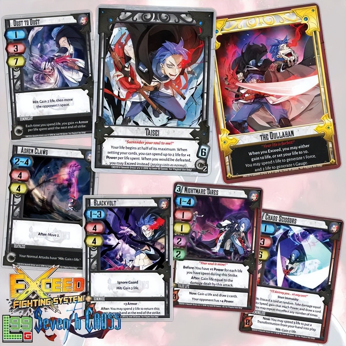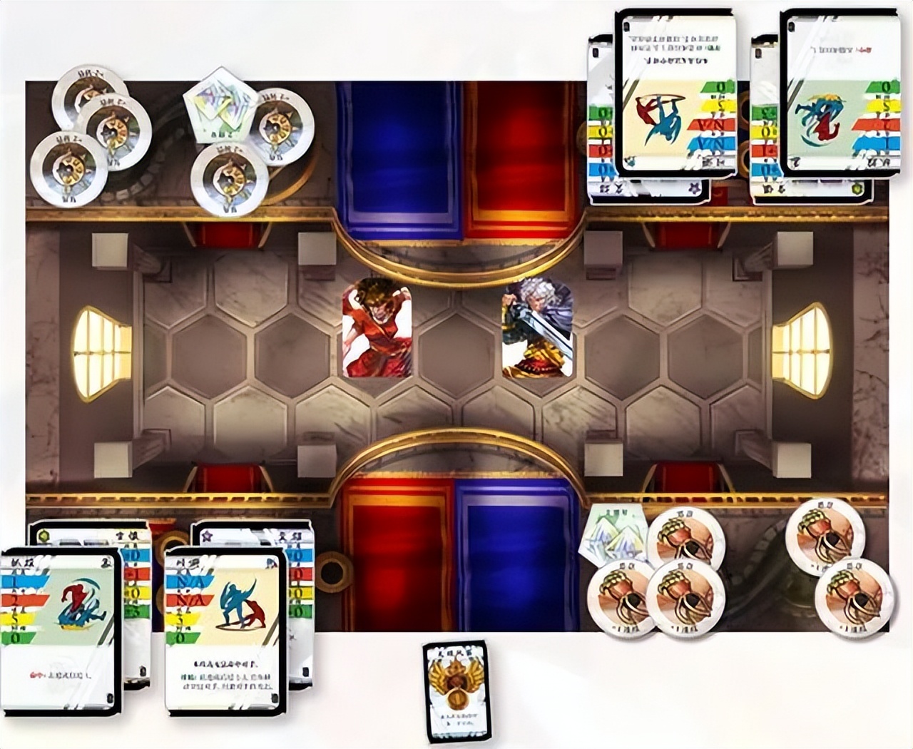 ar社把旗下不同游戏的角色搞了一次联动大乱斗,桌游《不败之颠》以角色面板上的技能,实现各种组合技的发动。