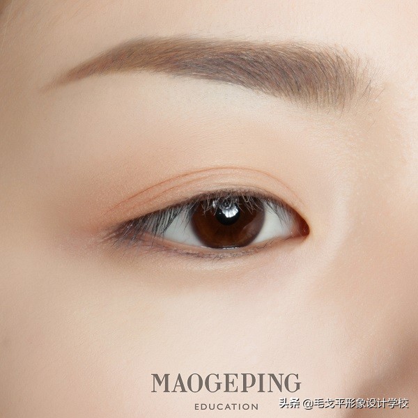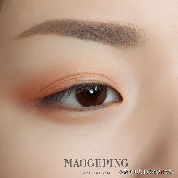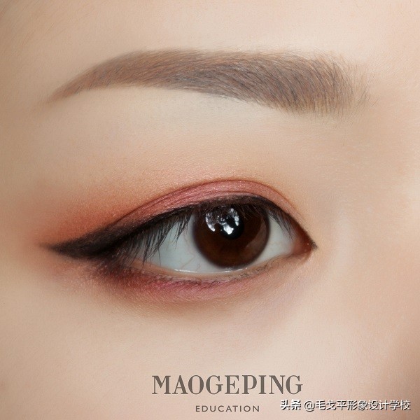 步骤三:上下眼尾用棕橘色眼影加深,注意眼影的方向要微微上翘。