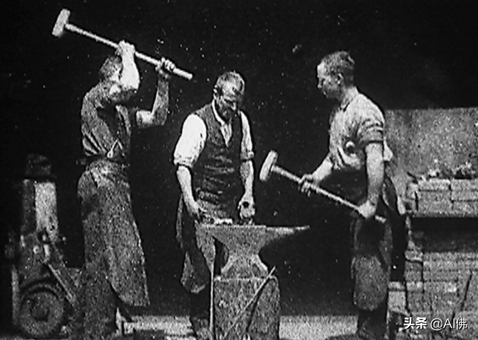 电影中的第一批演员于 1893 年在无声电影“铁匠场景”中首次亮相,其中铁匠与他的两个助手一起加工一块金属。铁匠不是铁匠,而是制作这部电影的爱迪生公司的员工。