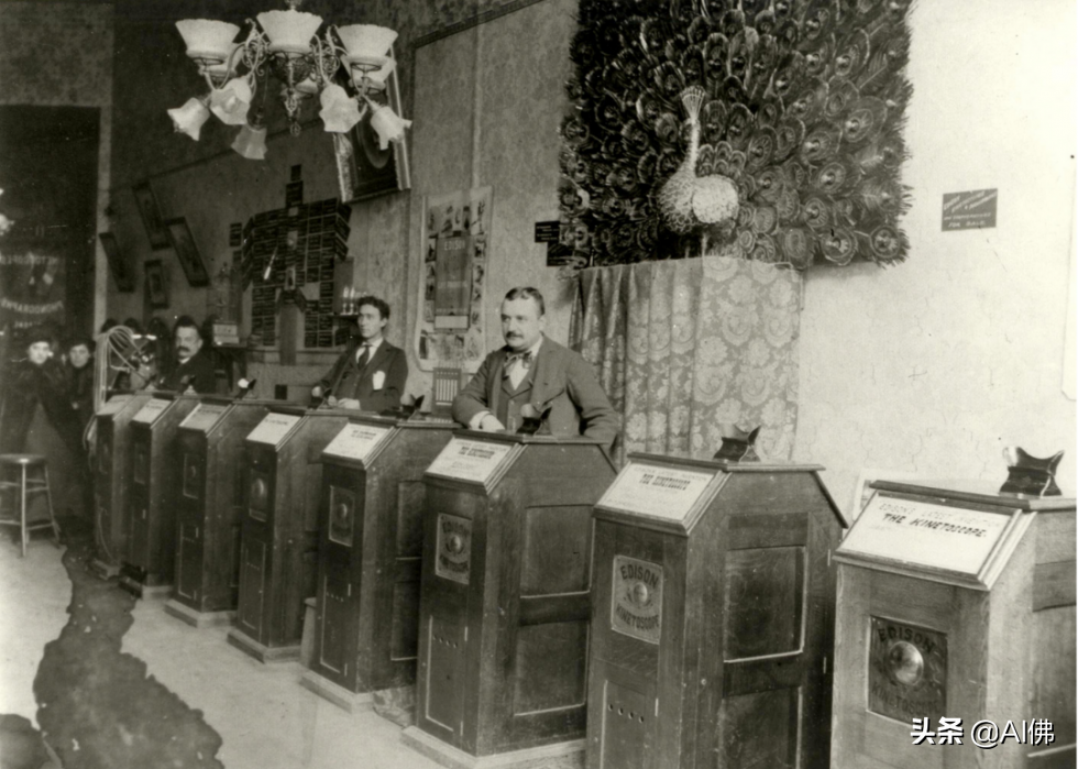 第一家商业电影院于 1894 年在纽约市开业,向观众展示电影放映机。剧院由先驱荷兰兄弟经营,他们用 10 台机器。