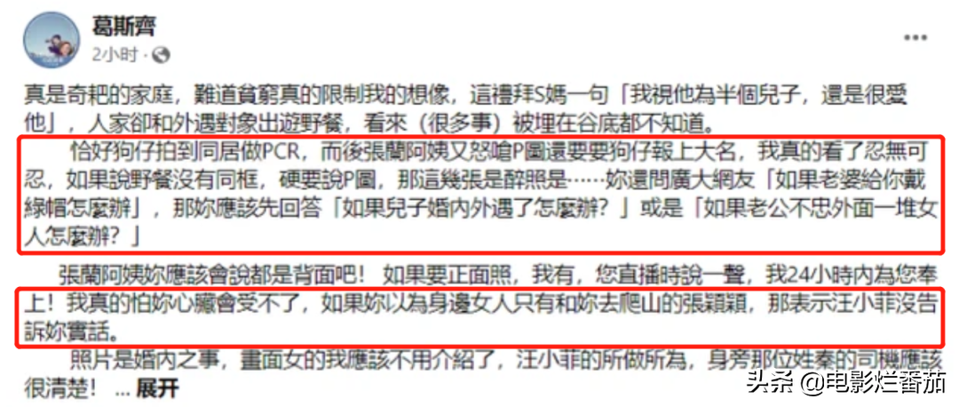 最后他更是直言:如果你以为(汪小菲)身边女人只有和你去爬山的张颖颖,那表示汪小菲没有告诉你实话。