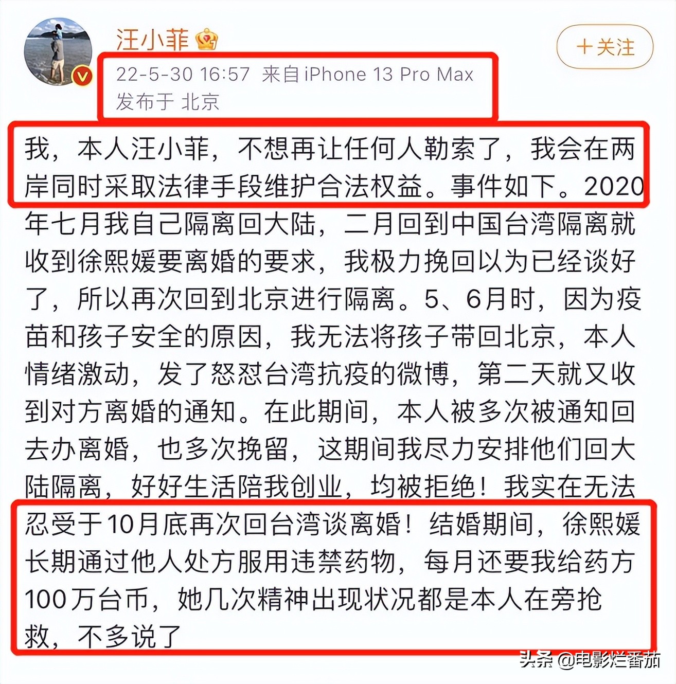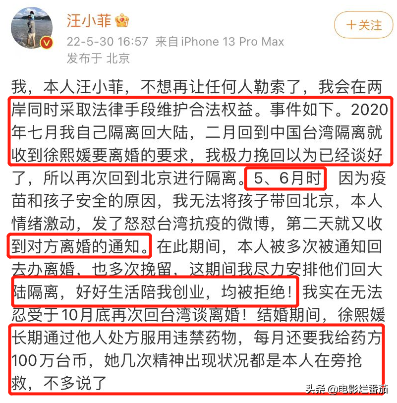 从上述的字里行间中,不难发现汪小菲很“委屈”。