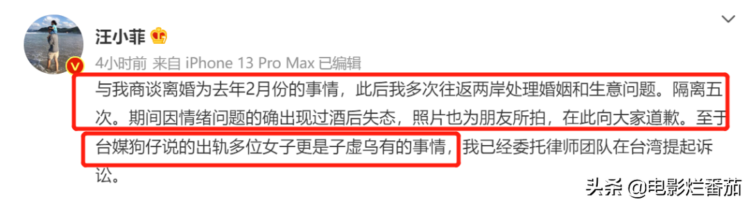 随即,他又重新发布了一条简短“说明”,大致意思,“商谈离婚是去年2月份的事情,出轨多位女性是子虚乌有的事情”。
