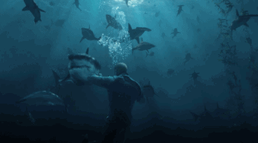终极大战时,斯坦森借助残破的潜艇割开了巨齿鲨的腹部,鲜血吸引到成千上万只鲨鱼前来觅食,群鲨乱舞的特效,会给每一个去沙滩游水的人带来挥之不去的阴影。