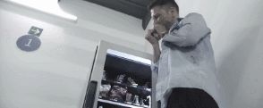 奥利弗用无限供给的自动售卖机里的物资,在楼梯间造了一个自给自足的生活空间。