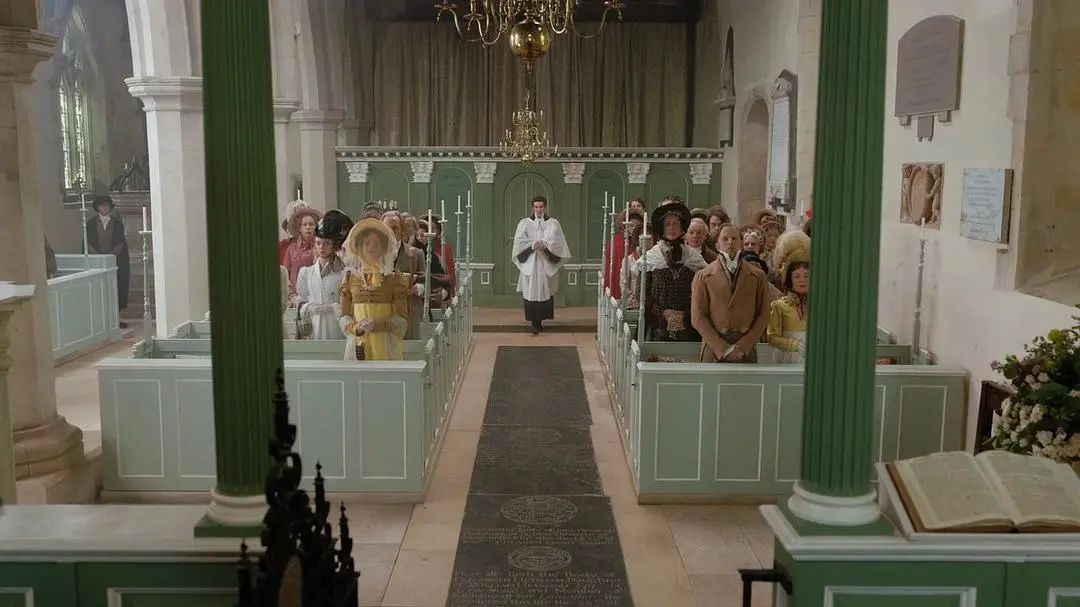 在电影开头出现的奈特利先生换装的全部场景,在将近两分钟的时间内,奈特利从脱下骑马的装束到穿上会客的正装,一件件将衣物展示给观众,结构分明且具有时代特性,可以成为观众了解19世纪初期英国乡绅阶级着装的切入点。