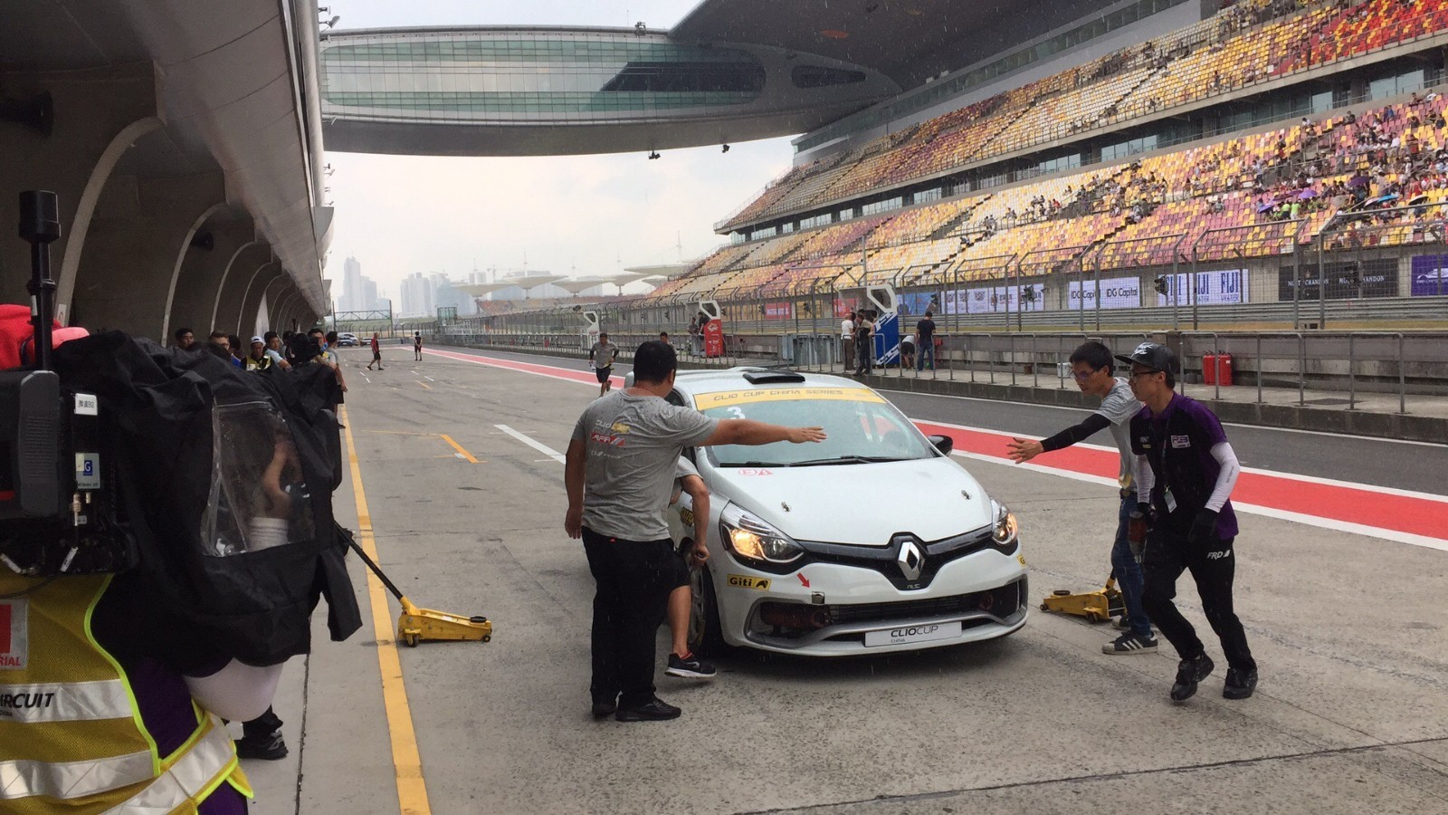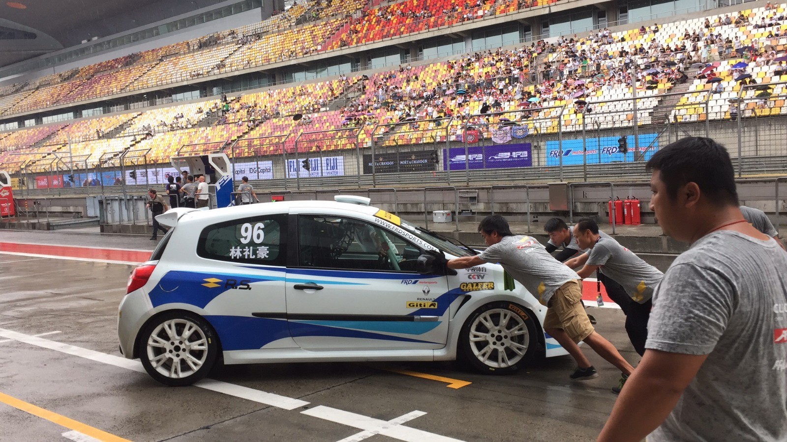 天有不测风云,竟然下起了雨,不过车手依然激情满满,毫无懈怠之意。