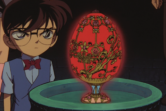 既然要借着剧场版《世纪末的魔术师》一话中的部分内容,那么我们就先来了解一下这部作品。这是第三部剧场版,1999年的,很早,现在看来画面相当不精良。怪盗基德在这里第一次登上大荧幕电影,剧情设定为跨国犯罪,还牵扯到了罗曼诺夫王朝陈年旧事,以及两个传世珍宝的彩蛋。