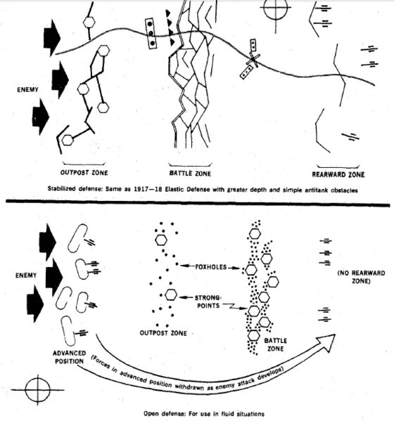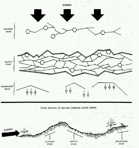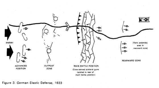 在这里为大家科普一下莫德尔的防御模式的特点。首先这种防御常被称作弹性防御,允许一定程度上的撤退,阵地分层分块而且把师级作战单位拆分成团营级别的作战单位不断填补阵地空缺。就算第一层的步兵炮兵联合防御被打破,第二次的装甲师也可以协防阻挡敌军,情况不好扔掉外围炮灰步兵师带着装甲部队跑路也方便。这种防御模式本质上还是阵地防御。