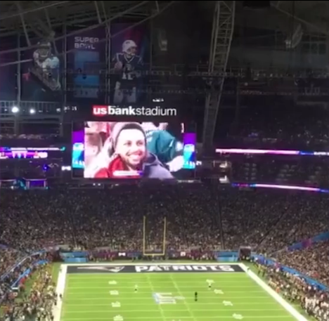 而小学生库里更是被现场镜头投影到大屏幕上,库里支持费城老鹰队,而现场大多数球迷支持新英格兰爱国者,库里为此还遭到了嘘声,只好尴尬地笑笑。