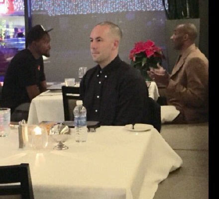 球员就餐一般会跟随球队,但在非比赛日,球员还是比较自由的。在2015年一场雷霆对战湖人前夕,湖人全队前往俄克拉荷马城,而就在当地一家餐厅,有球迷便拍到了科比与杜兰特一同共进晚餐的画面。如果你在两位划时代的巨星旁边一同进餐,你还能激动得吃下去吗?