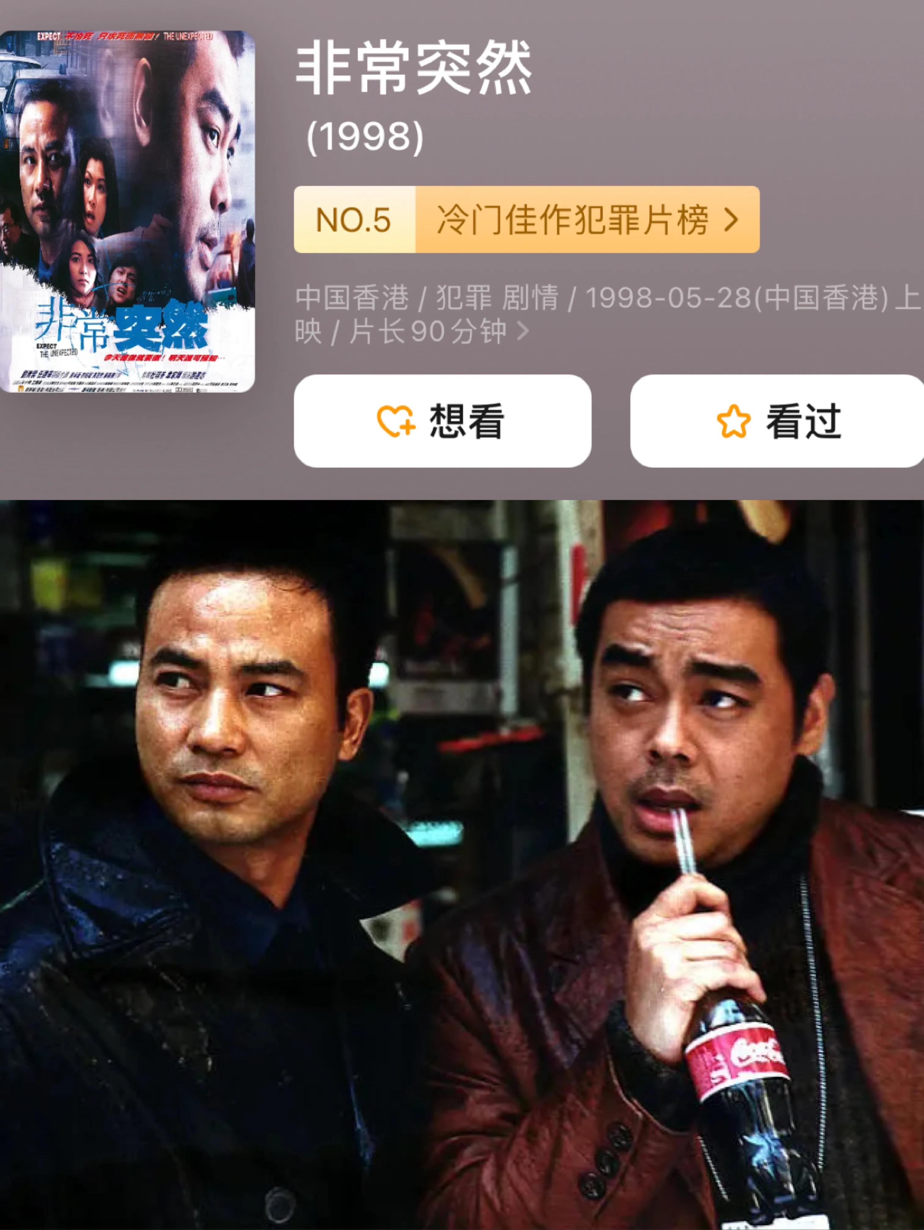 《非常突然》仍然是一部让我觉得温暖的电影。它表面上是一场警匪之间的斗争,实际上所注重的仍是对人的描写。开头与结尾两个相同的场景,潮湿的街道上车来车往,女主角辛勤的擦者窗户玻璃,洋溢着强烈的生活气息。只是一个普通的女人,做着一份普通的工作。在经历了一连串的风波之后,一切又回到了从前,仿佛什么都不曾发生过。于是,那些之前发生过的事意义何在?除了记忆中留下的一些痕迹。