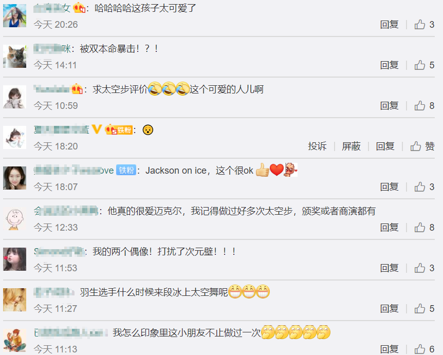 有mj的粉丝也发出了这样的评价:“太空步的舞蹈动作不管在哪里都很优雅~冰上更难吧,羽生结弦好厉害!”