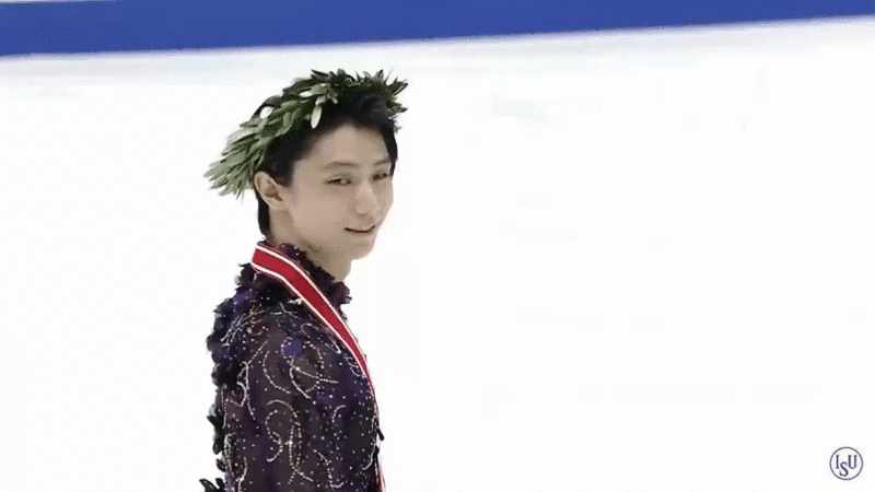 2019年的nhk杯上,在夺冠后合影时,他也这样在冰上走过一次太空步呀!