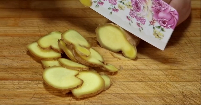 1、生姜片要切得稍微薄一点,不要切得太厚了。