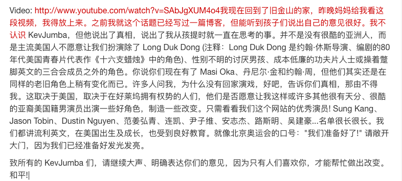 阿祖演美剧,除了圆功夫梦,还有一个重要的原因——《荒原》可以为提高亚裔演员在好莱坞的地位做一点点的贡献。他对这一点一直有执念,曾在自己的博客上写过相关的文章。