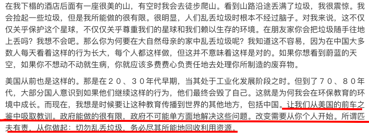 他的博客里还有一个环保系列。在这个系列里我看到了自己的丑陋。