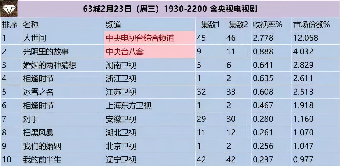 收视率低、讨论度低、网播数据平平,根据csm63城电视剧收视率排行榜,《我们的婚姻》首播收视0.25%,排在第九位,占市场份额1.04%,只比多次重播的《我的前半生》稍高一些。