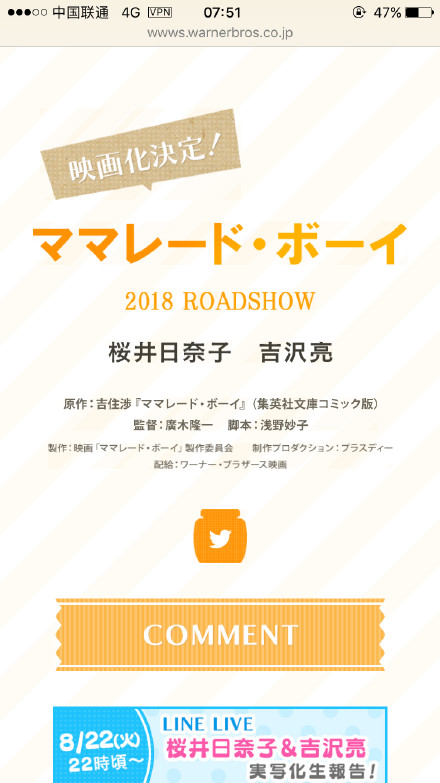 少女漫《橘子酱男孩》真人电影化决定!!2018年上映。