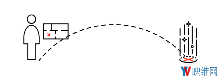 这种方法的主要设计问题是:虚拟空间限制在用户的实际可用空间,通常在1.5平方米-2平方米之间。大多数体验所使用的空间都大于这个范围,这使得其中大部分选择允许用户超越这一限制的移动机制。
